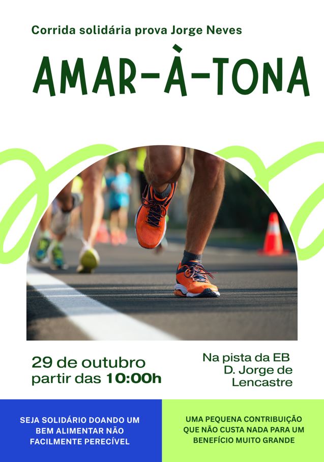Vai realizar-se o já habitual Amar-à-Tona - corrida solidária prova Jorge Neves - no próximo dia 29 de outubro na pista da escola básica D. Jorge de Lencastre a partir das 10:00h.