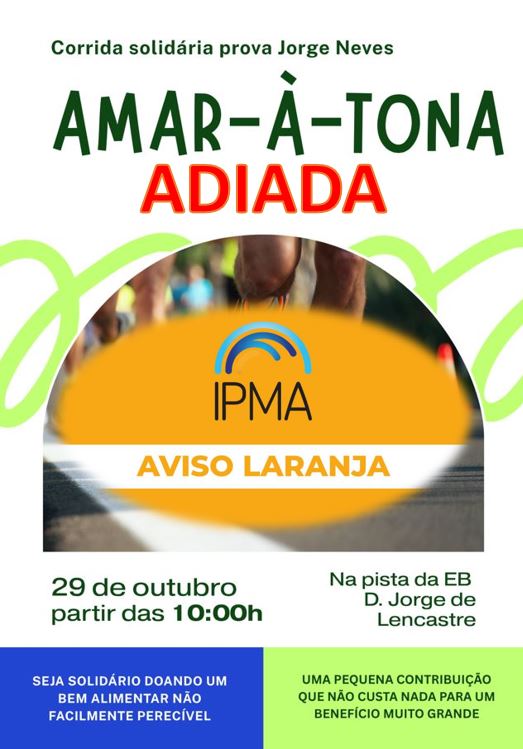 Vai realizar-se o já habitual Amar-à-Tona - corrida solidária prova Jorge Neves - no próximo dia 29 de outubro na pista da escola básica D. Jorge de Lencastre a partir das 10:00h.
